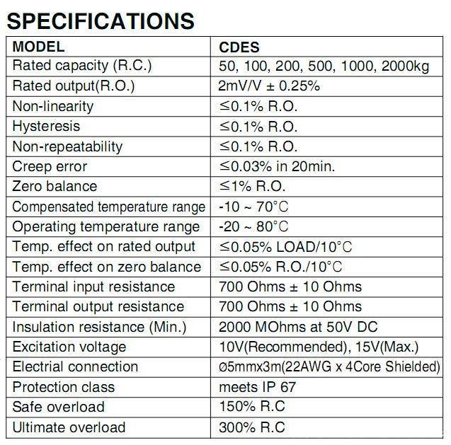 资料由【广州兰瑟电子-杨工】供应韩国bongshin 奉信CDES-500kg CDES系列称重传感器